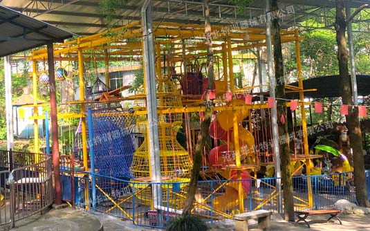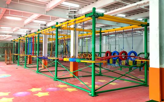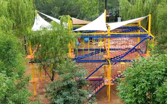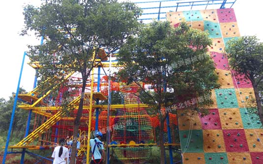我公司精心研制開發的兒童拓展訓練器械可分為室外型和室內型兩大類,室外類器械項目連接大部分采用鍍鋅鏈條,盡量少的采用繩子連接,減少維護量,鋼構部分充分考慮穩定性和耐久性;室內型設備多采用繩子連接項目,使項目更適合兒童使用,鋼構部分在充分考慮穩定性、安全性的基礎上,盡量采用輕量化設計,以便于室內的搬移。器械主要由周邊探險項目、中間繩網項目、木屋、冒險塔、攀巖等主要部分構成,標準項目間距3.6米,平臺0.9*0.9米,一層項目總高3.5米,兩層項目總高6米、6.5米, 三層項目總高8米、8.5米。間距層高不固定,可根據場地免費設計調整合理化利用空間。