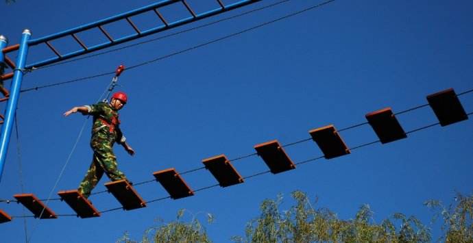 緬甸橋。這是一個有三條繩索構成的高空項目。官兵需要依靠自身力量,完成從繩索一段到另一端的穿越。 典型案例:小明軍事訓練五公里、隊列、擒敵樣樣拿手,唯有四百米障礙成績一直不及格。心理咨詢師經過了解后得知小趙患有恐高癥,訓練時,一遇高板和壕溝就膽怯。針對這一情況,心理咨詢師擬定了詳細方案,通過反復“登高...