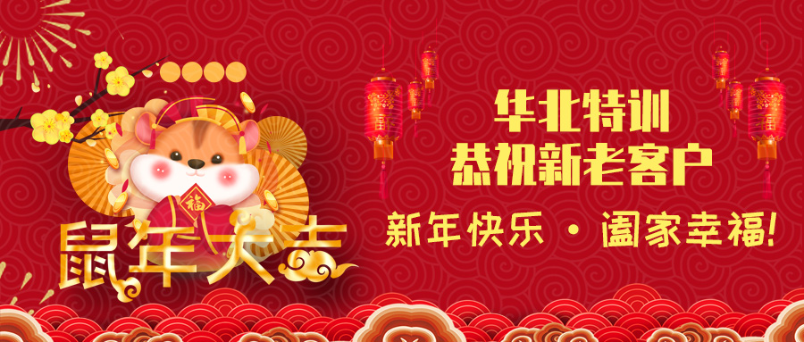 時光匆匆,隨著2020年新年鐘聲的慢慢臨近,春節也將如期而至。華北特訓在此感謝大家過去一年對我司的支持與信任,同時也希望在新的一年里,我們能繼續得到大家的關注與支持,并且也會一如既往地為大家提供更優質的服務。在此向各位新老客戶和廣大朋友們拜個早年!預祝大家新春愉快!財源廣進!事業紅火!
