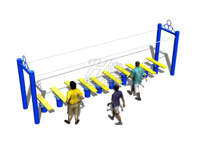 1、通過簡單的配對游戲把團隊成員兩兩搭配,兩人為一組。 2、第一組成員從器材的一端出發,不斷變換身體姿勢,有創造性地、靈活、及時地選擇落腳點,并保持兩人步調的一致性。 3、其他組的成員依此進行。
