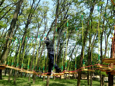 叢林探險是通過在樹木與樹木之間搭建各種不同風格,難易程度不同,超強刺激的拓展項目,利用專業的安全裝備體驗高空穿行,感受樹上攀爬與林間穿越的刺激,能有效的提高參與者的勇氣和自信心。可以使得體驗者體會到不同于普通地面環境下的穿越感受。