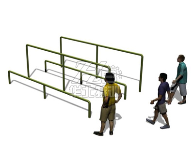 由四件橫欄組成,橫欄間距1米,直埋地下0.5米,寬度4.5米。第一、第三道橫欄為低欄,地上高度0.6米,第二、第四道橫欄為高欄,地上高度1.5米。