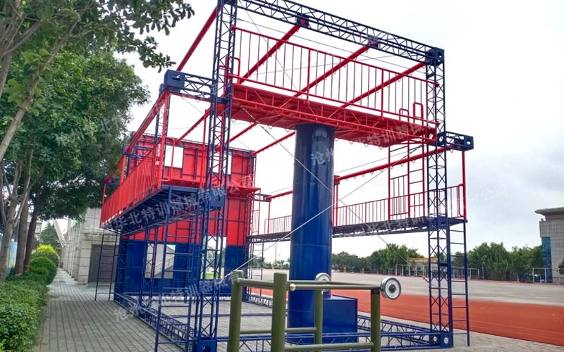 此消防繩索訓練架集多重功能于一身,小身材大作用,將多個場景訓練的技術集結于多功能逃生訓練架,大大節省了占地面積和空間,又滿足日常攀爬、救援、繩索技術等訓練。