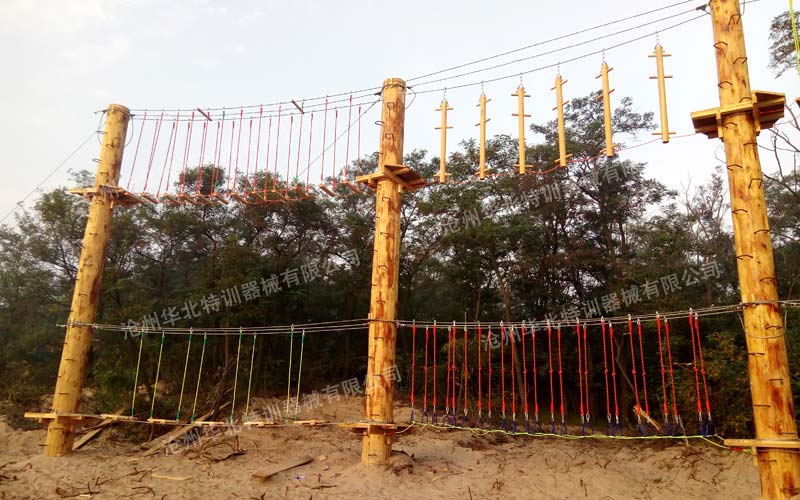 我公司精心設計制作的原生態項目就是模擬叢林探險建設的一系列項目,讓體驗者體驗高空攀爬及林間穿越的感覺,既環保又時尚。