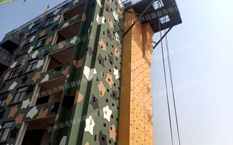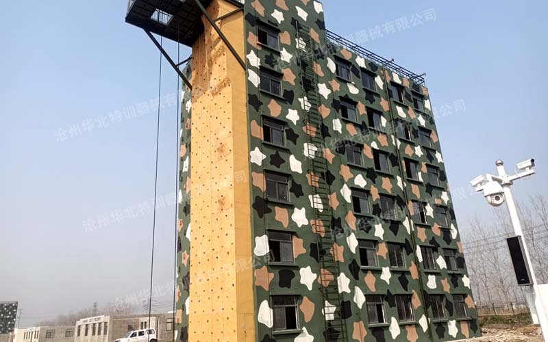 江蘇淮安某部攀登樓附屬設施順利完工!此項目主要包含攀巖墻、雨水管、避雷針、攀爬鋼梯及索降平臺。現已建設完成并投入使用。