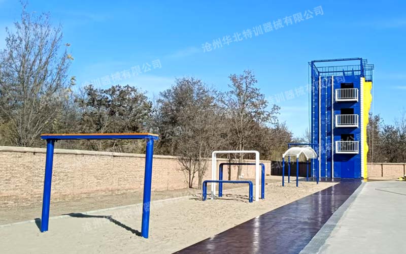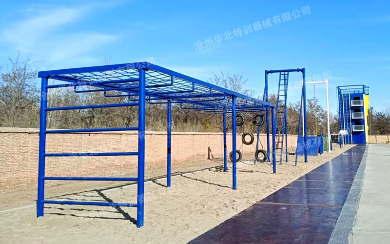 公安特警八項障礙場具體包括:低樁網、2.4米高板、空中軟網、高架速降、斜板蕩繩、愛爾蘭高板、高欄、弧形肋木。常規器械為雙道設計,也可根據場地情況,和日常訓練需求定制為單道,華北特訓是二十多年的專業生產廠家,支持個性化定制