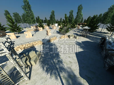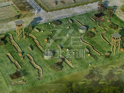 建設材料使用木箱、麻袋掩體、汽油桶、墻(木板墻或磚墻)、碉堡(木質或磚石制)、狙擊臺,多掩體組合建設,后期使用輪胎、彈藥箱、偽裝網進行裝飾。