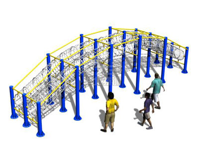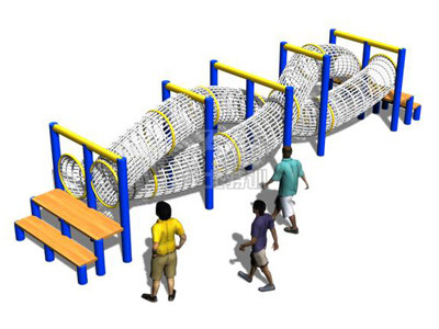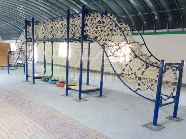 參訓人員借助網子在狹窄的空間內,從器械一頭進入,在另一頭爬出。(可計時)